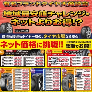 インチ別に明朗会計!輸入車・4x4など車種問わず、割り増し料金なし!(トラックは除く)